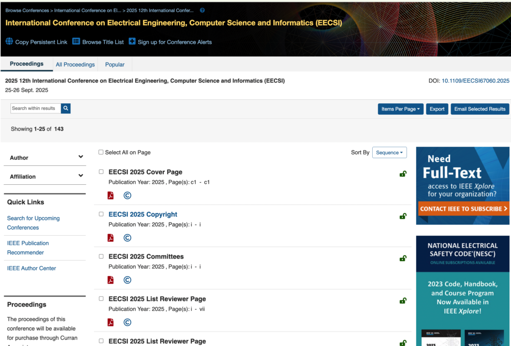 We are pleased to announce that the 12th International Conference on Electrical Engineering, Computer Science and Informatics (EECSI 2025) will be conducted in a hybrid format to facilitate both onsite and online participation.